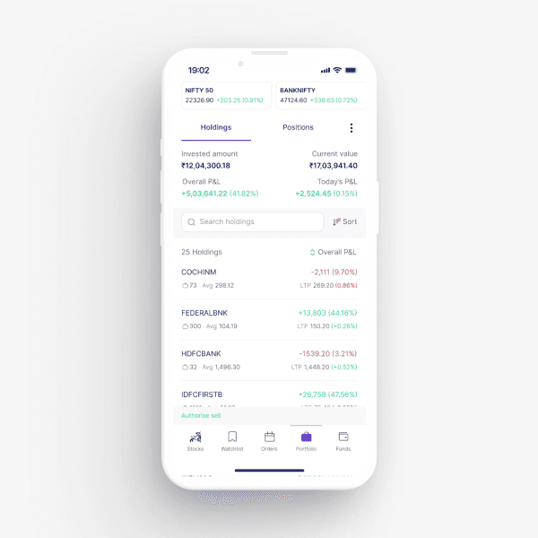 Real-time P&L tracking with color-coded performance indicators. Added filters by asset class (equity, F&O, mutual funds) so users could isolate what mattered.
