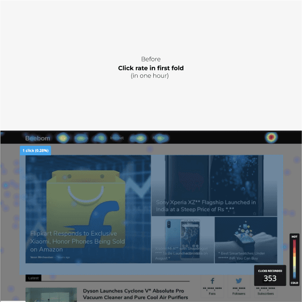 Before the redesign, the website was receiving a monthly traffic of 2 million users. Through strategic improvements in design, incorporating minor UX techniques, UI fixes, and refining the content strategy, we successfully surpassed the 6 million monthly user mark. Notable improvements include enhanced user engagement, with a 300% increase in click rates, improved readability, and optimized revenue through better ad placement. These efforts contributed to a remarkable 25% growth in business within a year.